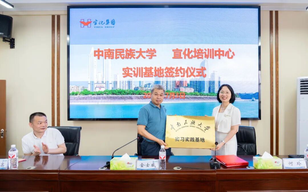 7月3日,宜化培训中心与中南民族大学签订实习实践基地合作协议,并现场进行授牌。